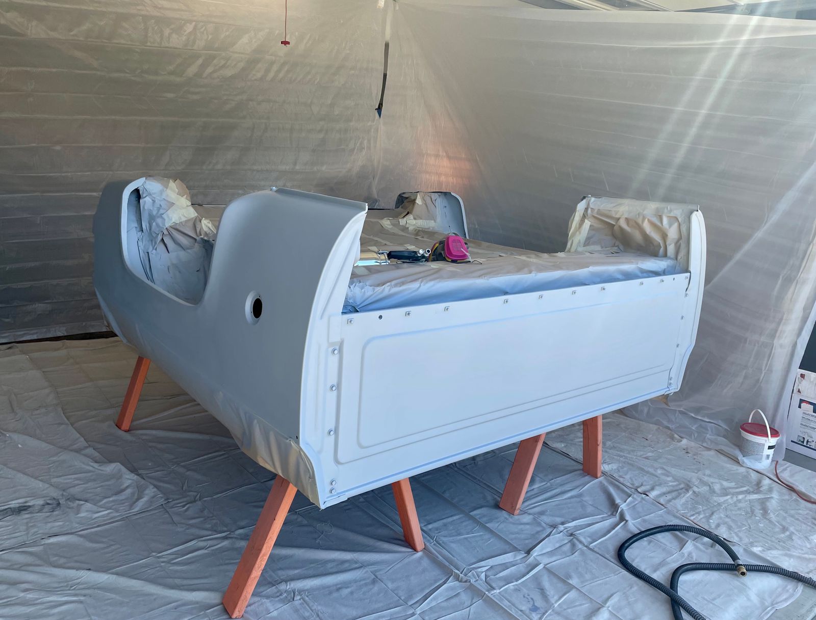 Scrubbed ole #MaterPT to the metal, in preparing for Raptor Bedliner. Also used Dolphin filler to prep new patch panels on bed of truck.