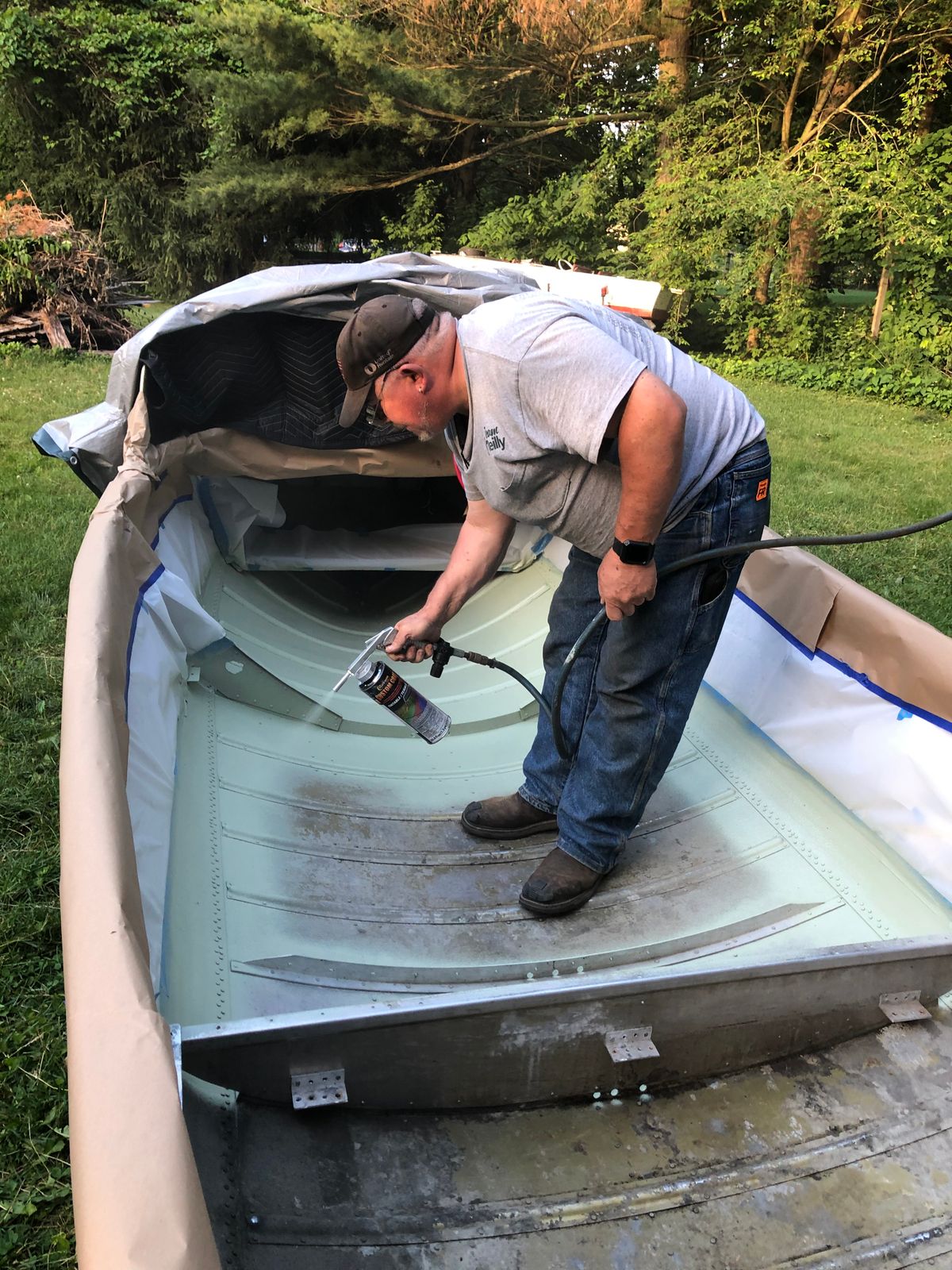 I am restoring a vintage aluminum boat. It had a textured inside bottom that had eroded over time. I was told about your product from a fellow restorer. I was able to closely match the tint to it’s original color. It sprayed on easily and looks perfect!