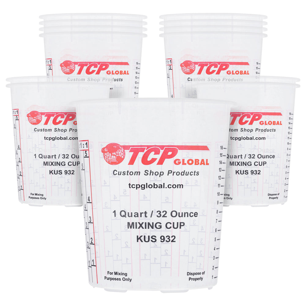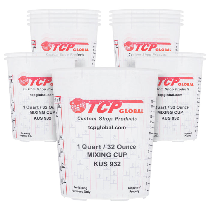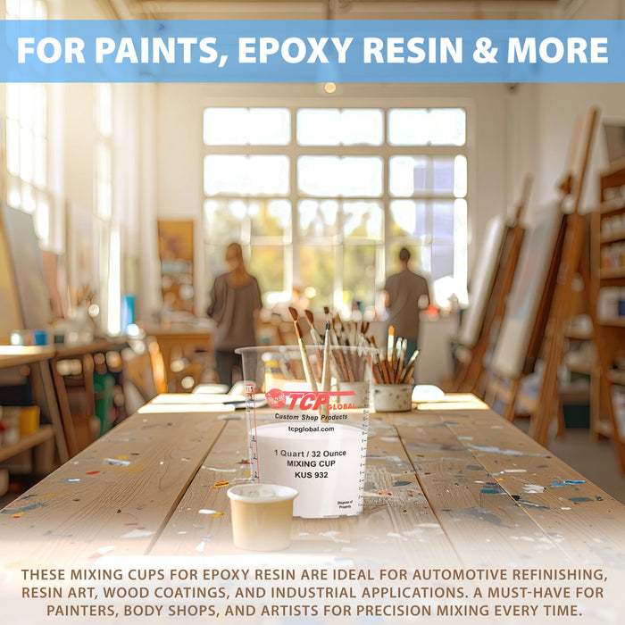 Custom Shop Paint Mixing Cups, 32-Ounce (12 Pack) - Plastic Measuring Cups for Liquids, Automotive Painting, Epoxy Resin, Acrylic Arts, Crafts, Disposable or Reusable, Graduated, Mixing Ratios