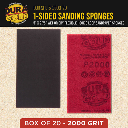 Box of 10 Dura-Gold Performance 2000 Grit 5" Long x 2-3/4" Wide Sanding Sponges with a Hook & Loop Backing. These high-performance, flexible, ...