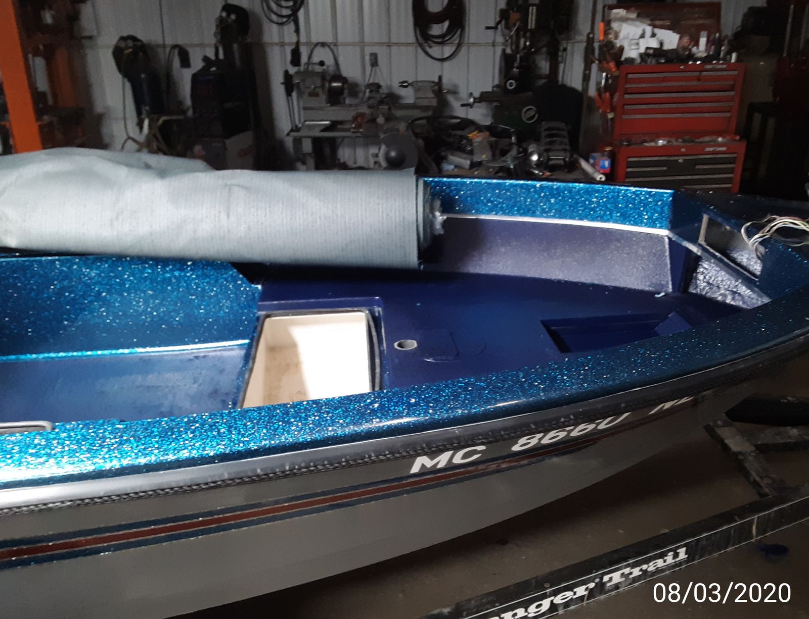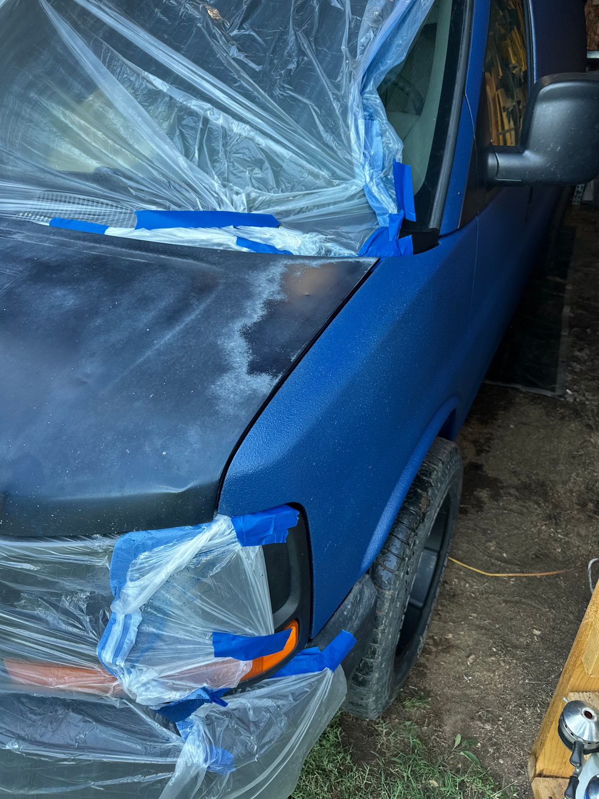 Sprayed in a boat all hood until it dried, most of the media turned plumb purple, i ordered navy blue, looked bad, i installed carpet to cover it up, not happy with the finished product color, everything else good