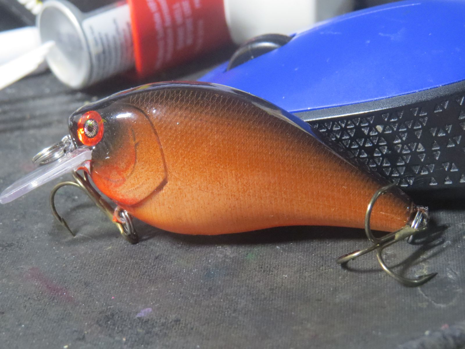 Easy to use, and no clogs! I used the 'Light Tan' to do the bottom part of the lure, then graduated the color to 'coffee brown' on the top of the back. I finished off the lure with a graduated 'Neon Orange" from the very bottom of the belly into the 'Light Tan' on the side. The easy flow of the paint allowed me to use lower air pressure to achieve the blend and look I wanted.